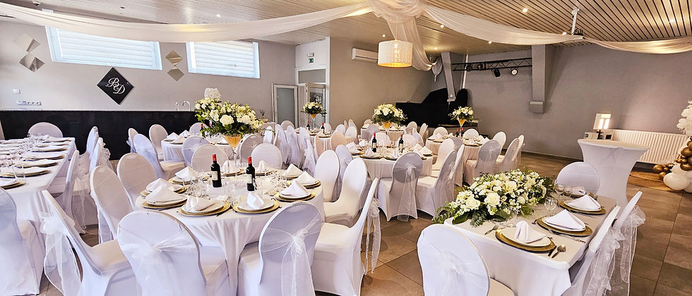 Personnalisez votre événement grâce à nos divers thèmes et coloris disponibles pour la décoration, moyennant un forfait supplémentaire à la location de la salle. Ou optez pour une de nos formules "tout compris" à découvrir lors de votre visite.
